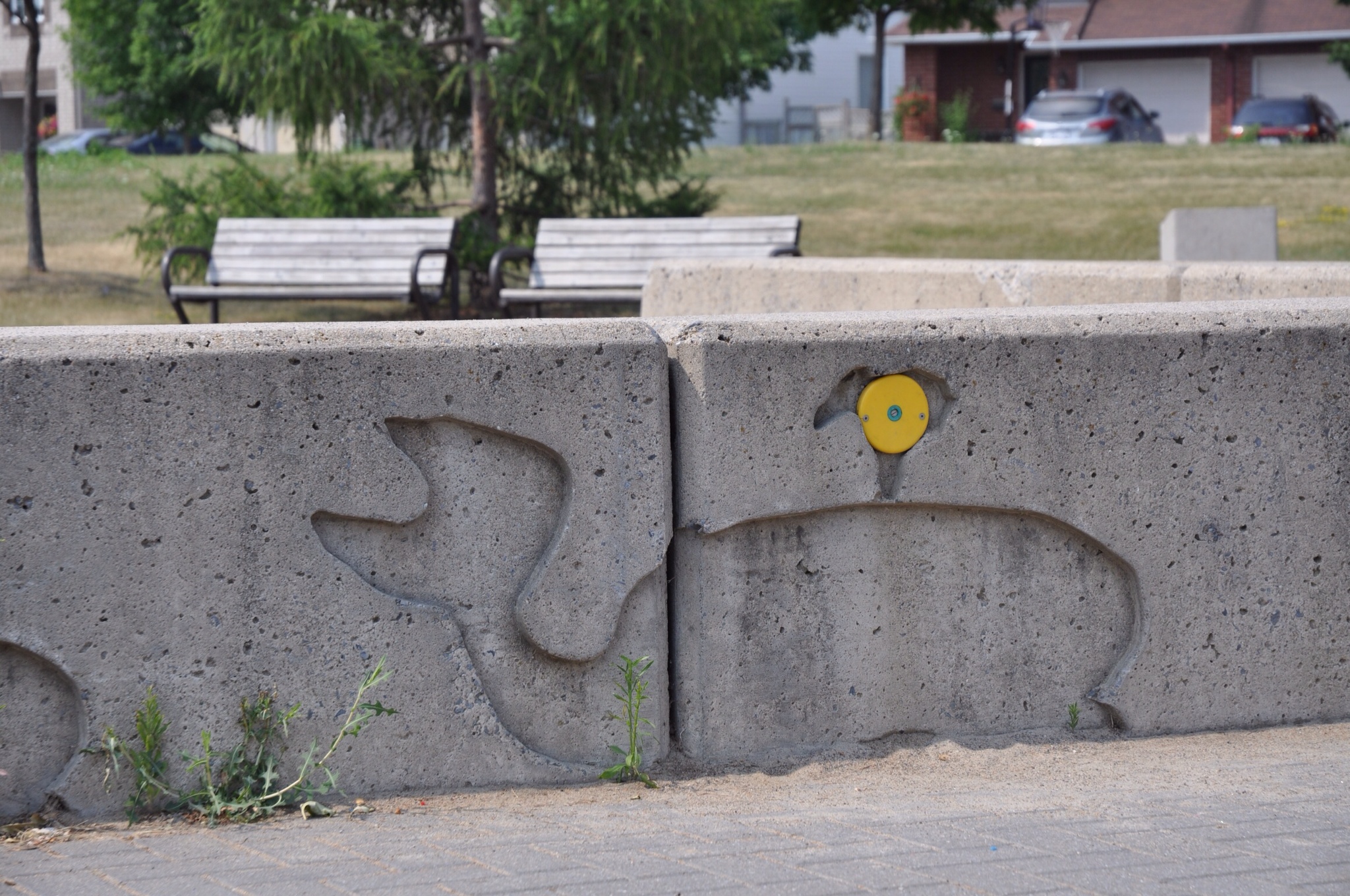 The splash pad is pretty simple. There are two concrete walls with whales engraved on the side and a water spray nozzle.