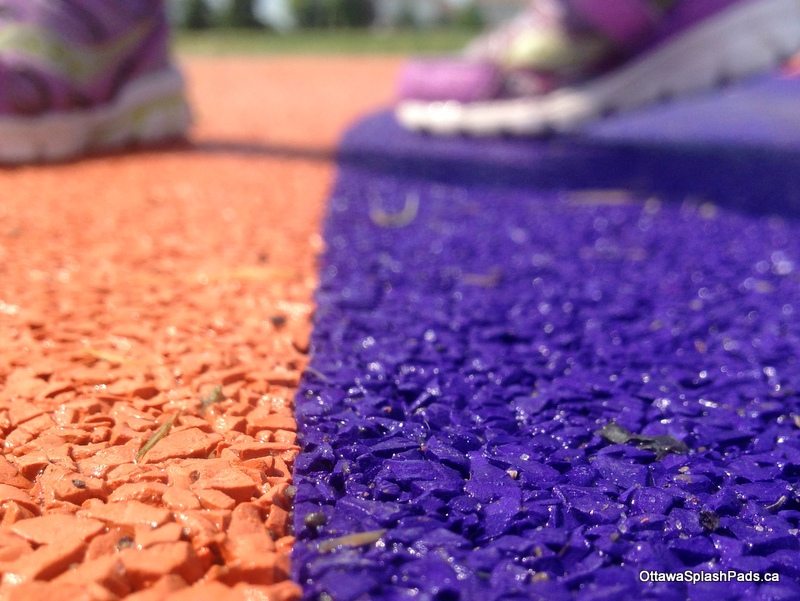 They painted a cool orange and blue swirl on the ground at Blue Willow Park Splash Pad and that makes all the difference.