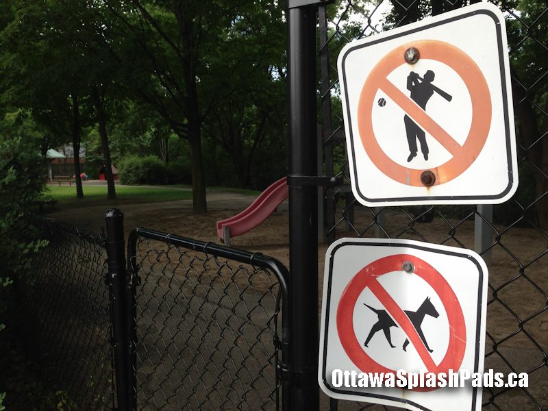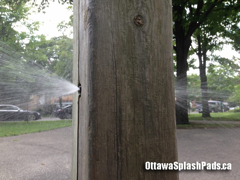 (The city of Ottawa open data says this splash pad is closed and under repair, but when we visited, the wooden post splash pad turned on just fine… Mind you, it is a wooden post.)