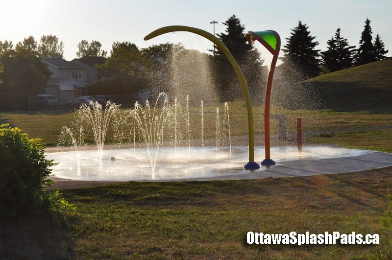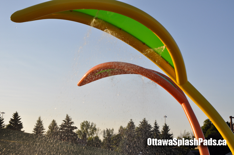Cedarcroft Park Splash Pad is a relatively new splash pad. It’s biggest features are the two big green leaves and that there is always water spraying you from somewhere in this pad!