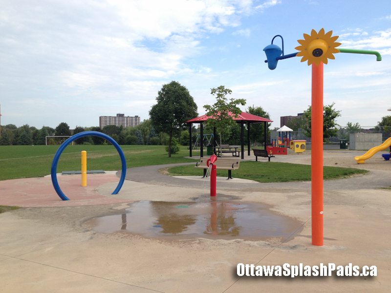 The park has some shade but there is a gazebo beside the splash pad. There are also swings and two playstructures to explore right beside the pad.