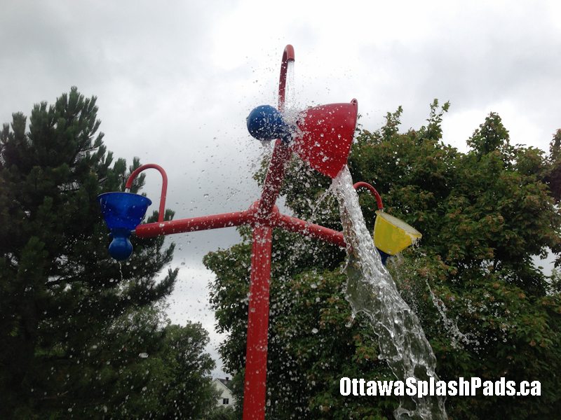Delorme Park Splash Pad is a newer splash pad whose main attraction is a tall post with three dumping buckets. The water pressure is high and the cycle is long. A surprisingly enjoyable pad.