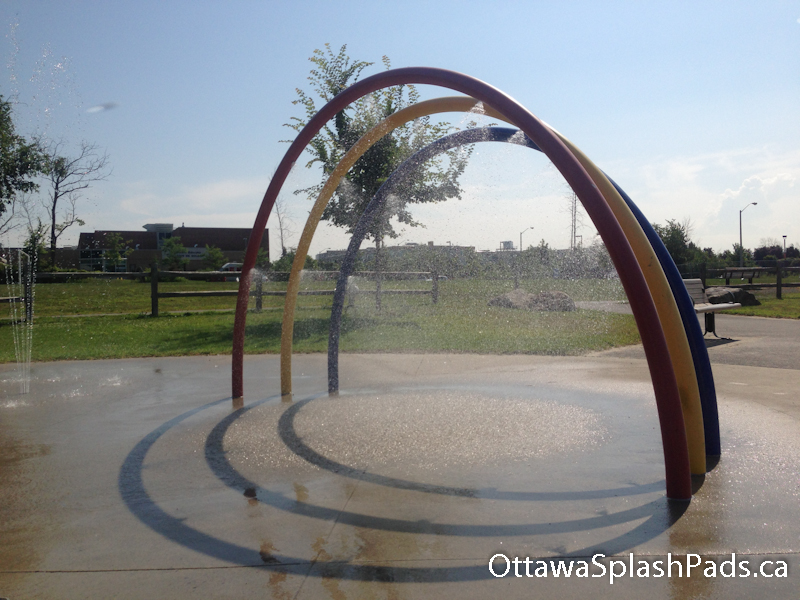 Dr. John Hopps Park has a modern, inviting splash pad with many different devices rotating through a fairly long cycle. At any given time there is water coming out from somewhere and you need to move quickly if you’re trying to avoid getting wet.