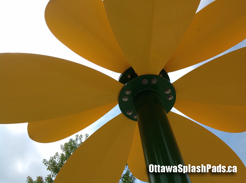 Fairfield Park Splash Pad is a newer pad whose best feature is two tall yellow daisy posts that dome water out the top.