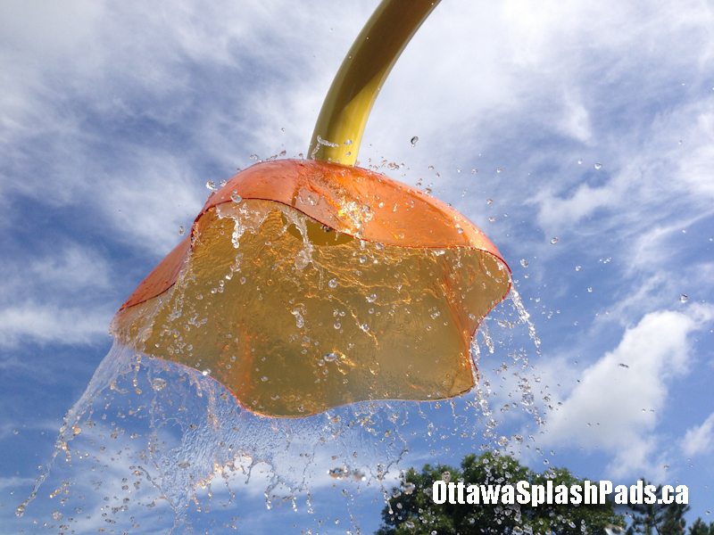 Fallingbrook Park Splash Pad is a newer pad whose main attraction is it’s two tall posts – a flower and a leaf. The water pressure is fairly high and this small, shady pad is a nice place to get wet on a hot day.