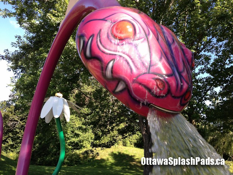 LESLIE PARK Splash Pad The white flower is pretty, but the purple snake spraying water is very cool. Photo Gallery – LESLIE PARK Splash Pad is located at in Nepean LESLIE PARK Splash Pad CENTER MAP on SPLASHPAD Water Play Structures: Coming soon… Stay tuned.