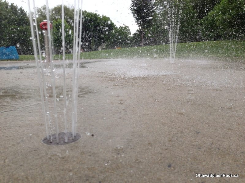 A very small splash pad in New Edinburgh park with only four ground sprinklers… but it’s quality, not quantity. You get some impressive height with these water fountains.