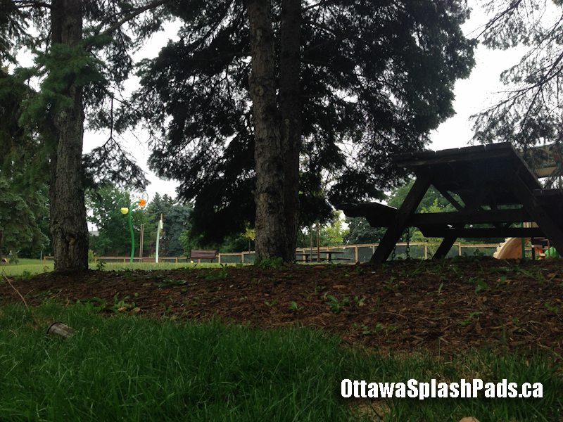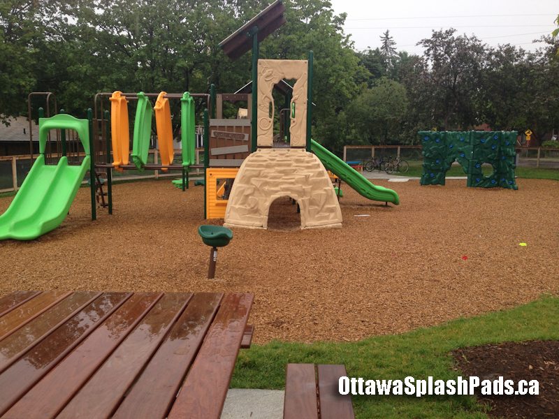 Primrose Park is a brand new modern splash pad in Ottawa located close to Chinatown. There are plenty of picnic tables here with natural shade (but no gazebo.) There’s also a new modern treehouse theme playstructure so kids can cool down in the water and work up a sweat on the monkey bars.