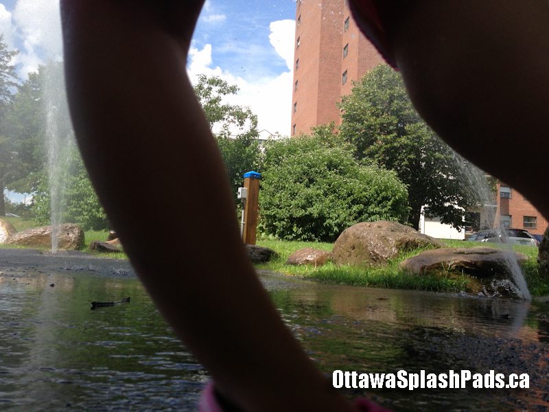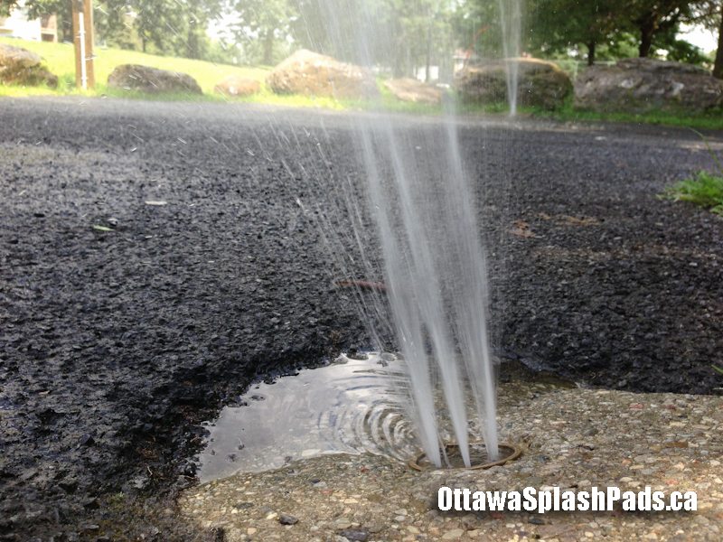 Sheffield Glen Park Splash Pad is a simple pad in a large, older park. The start button turns on three very powerful fountain sprays that shoot up and out into the pad. The streams seem a bit off centre and most of the water goes to one side off the pad.