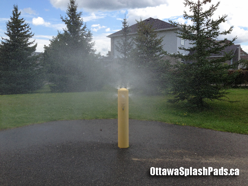 Sieveright Park Splash Pad is a basic splash pad with a short yellow post. When the button is pressed water mists out of all sides of the post at a high pressure. The water cycle is fairly short.